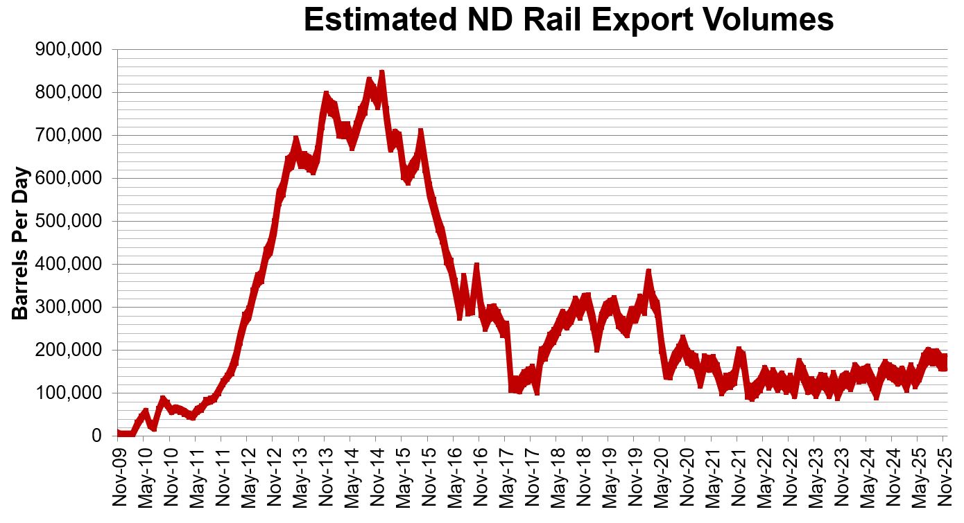Chart of estimated rail volumes from November 2025: